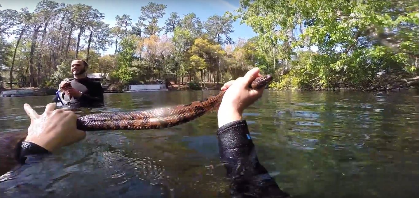 As a California water snake, the reptile can swim at an incredibly high speed, especially when a prey is locking